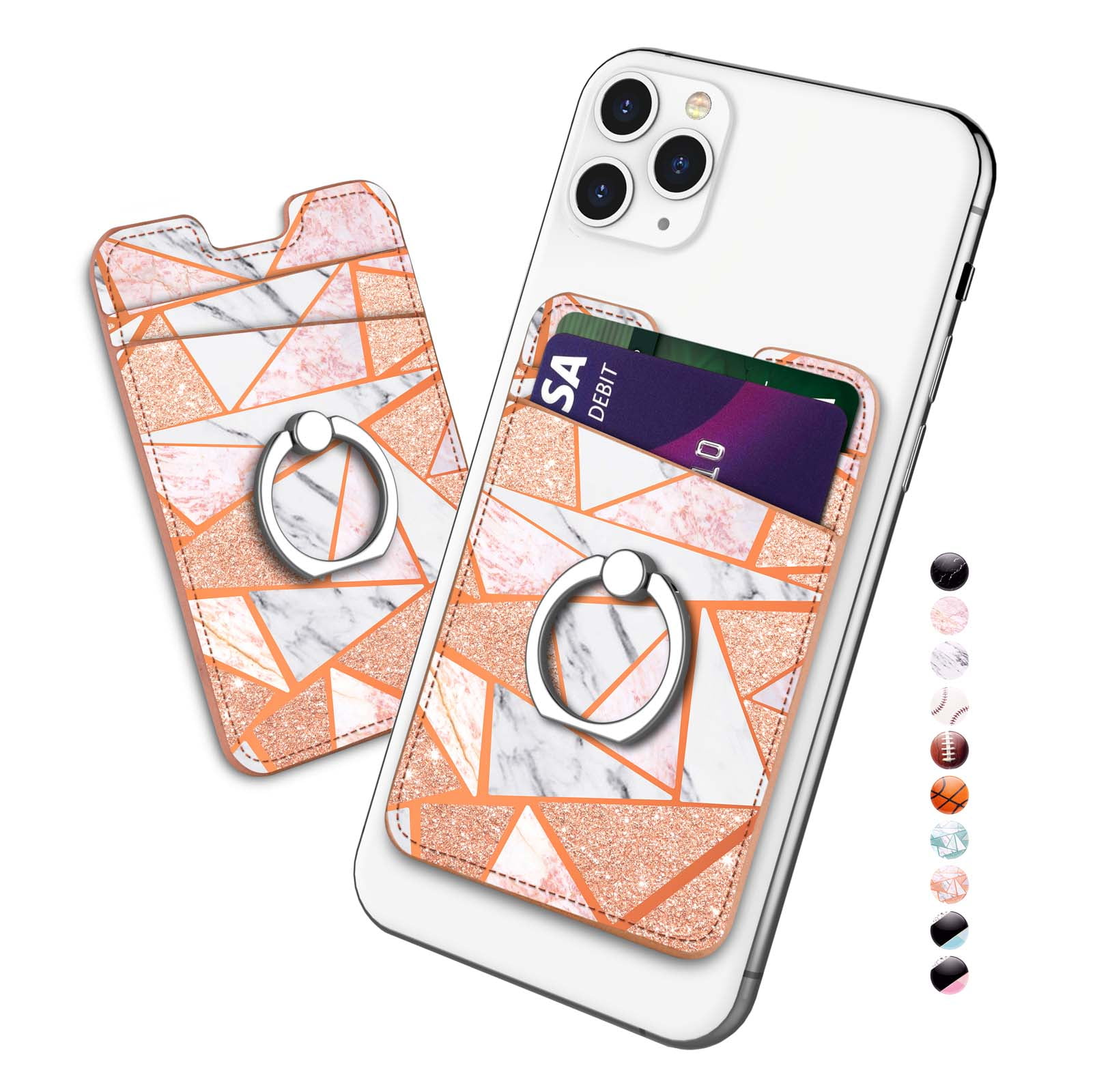 Amazon Com Phone Card Holder With Ring Grip For Back Of Phone Adhesive Stick On Credit Card Wallet Pocket For Iphone Android And Smartphones Cell Phones Accessories