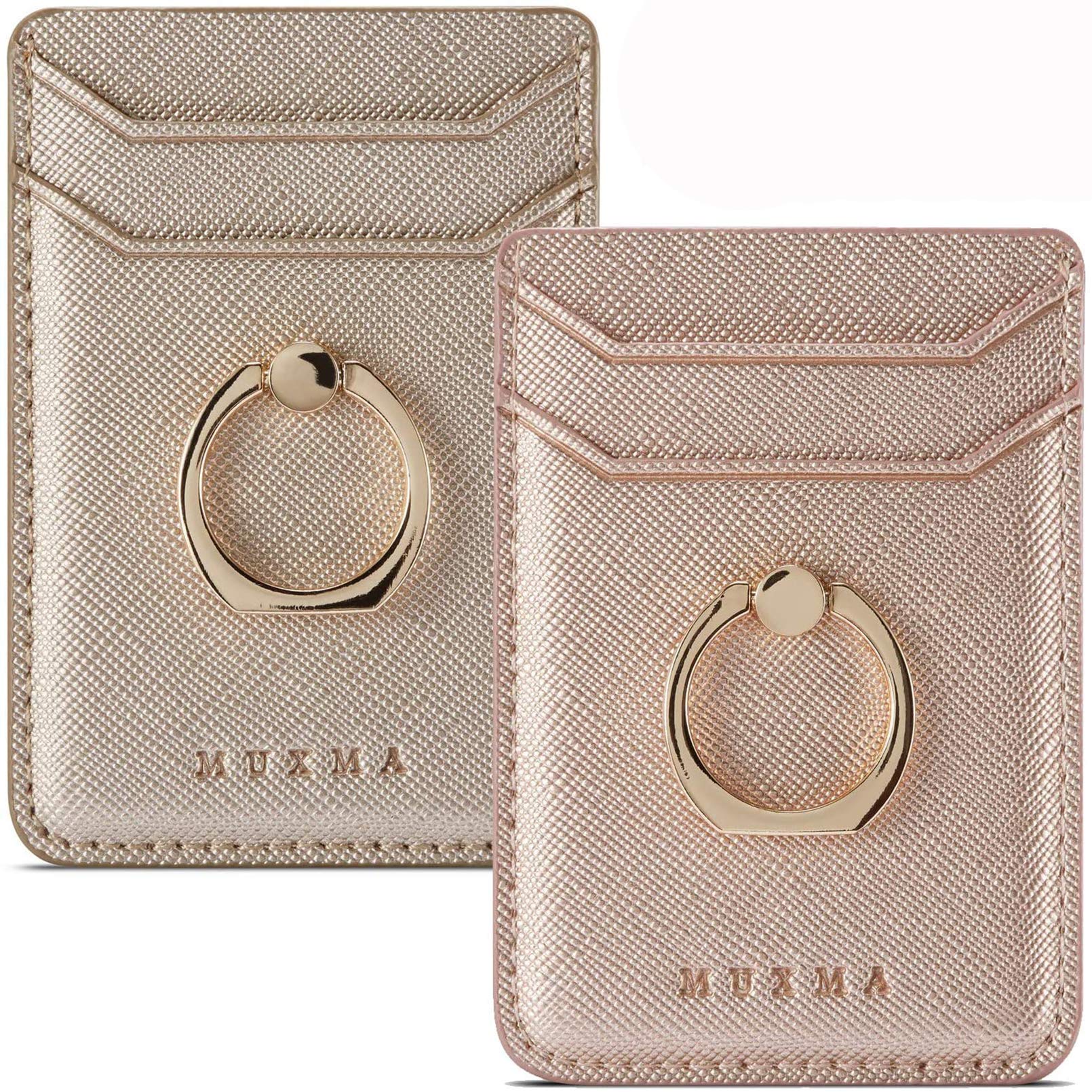 Amazon Com Cell Phone Card Holder Rfid Ring Stand Stick On Wallet Pu Leather Card Holder For Back Of Phone For Iphone Android And All Smartphones Rose Gold Cell Phones Accessories